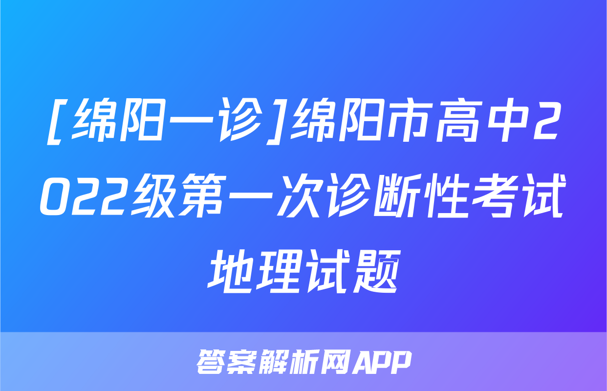[绵阳一诊]绵阳市高中2022级第一次诊断性考试地理试题正在持续更新,目前2024届最新高考模拟示范卷答案网为大家整理了相关试题及答案,供大家查缺补漏,高效提升成绩。