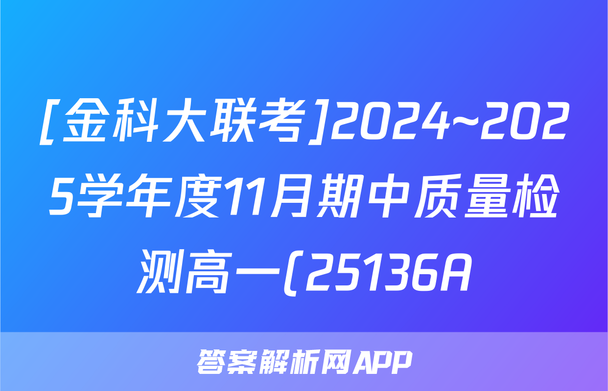 [金科大联考]2024~2025学年度11月期中质量检测高一(25136A)语文答案正在持续更新,目前2024届最新高考模拟示范卷答案网为大家整理了相关试题及答案,供大家查缺补漏,高效提升成绩。