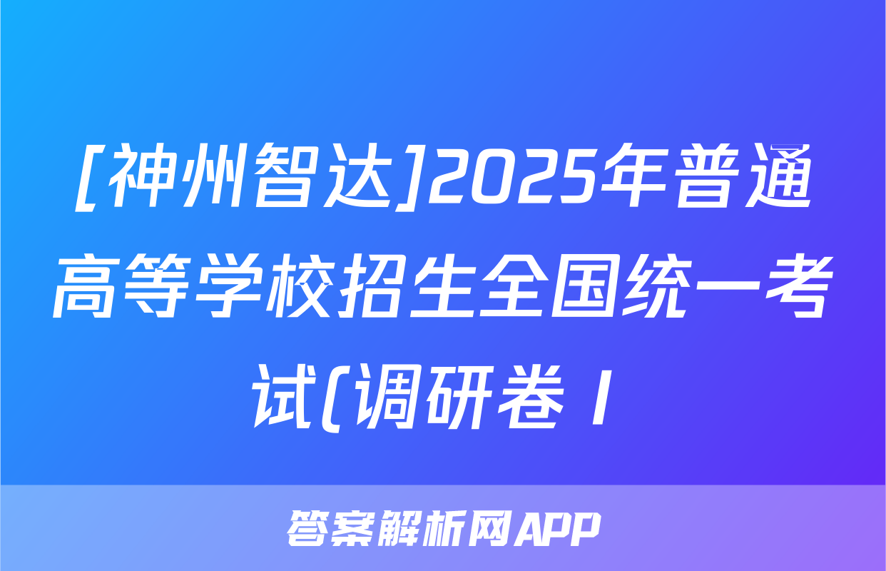 [神州智达]2025年普通高等学校招生全国统一考试(调研卷Ⅰ)生物答案正在持续更新,目前2024届最新高考模拟示范卷答案网为大家整理了相关试题及答案,供大家查缺补漏,高效提升成绩。